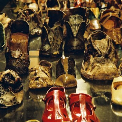 IN THEIR FOOTSTEPS is a remarkable exhibition, curated by the Holocaust Education Charity Learning from the Righteous. It features 200 ceramic shoes made by the artist Jenny Stolzenberg in memory of her father, Wilhelm Pollak. The sole survivor of an Austrian Jewish family, he never spoke about his concentration camp experiences. When he died, Jenny made the shoes in response to his silence, describing the process of making them as the conversation they were never able to have. Before she died in 2016, they toured the world to high acclaim.
